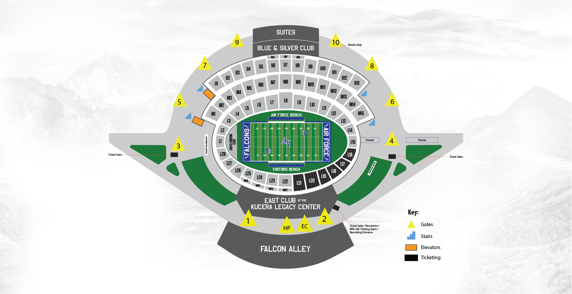 Elevators are located at the south end of the stadium.